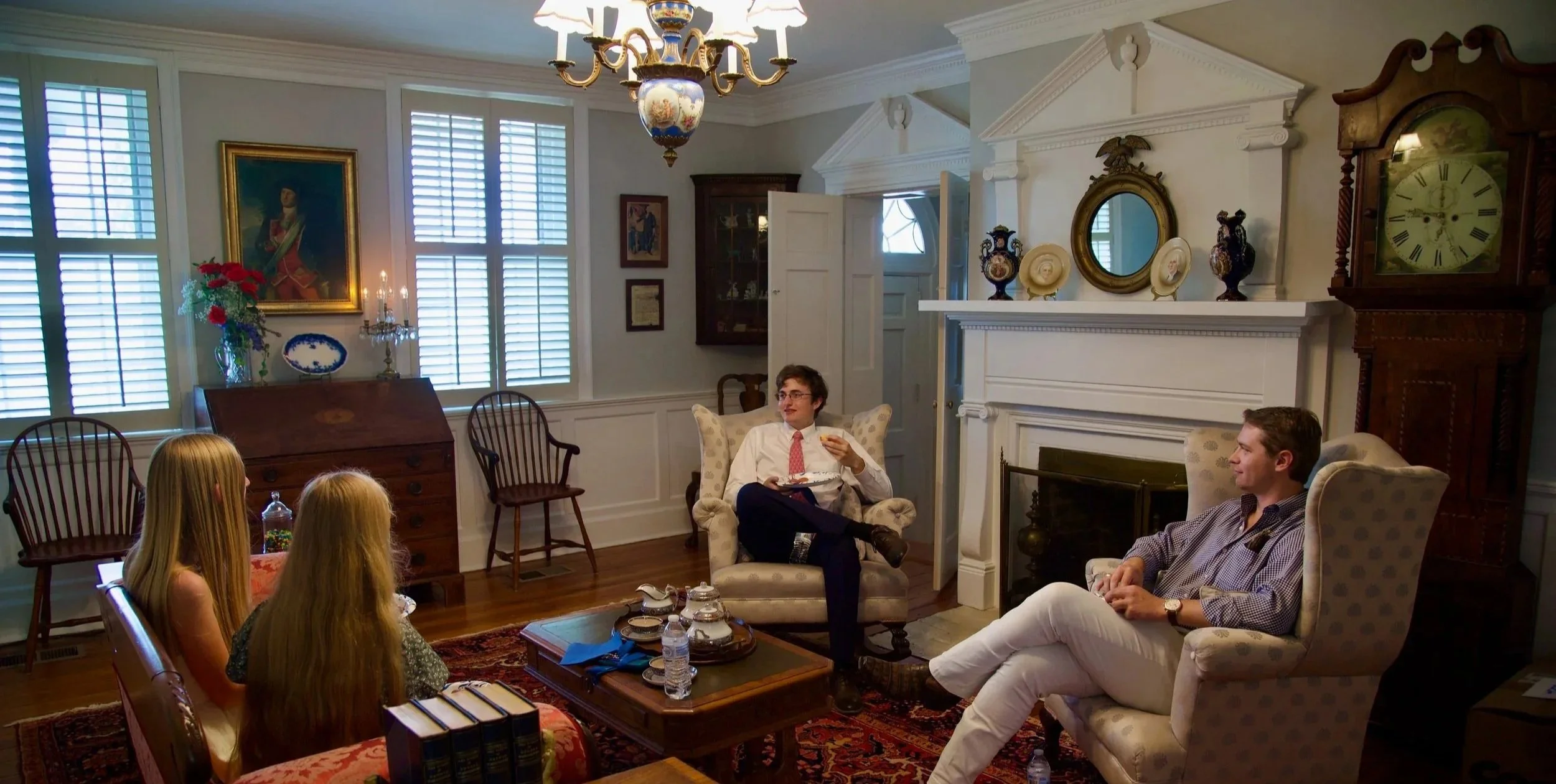 (Students and alumni recollect in the George Washington Parlor, Fancy Hill |TGR )