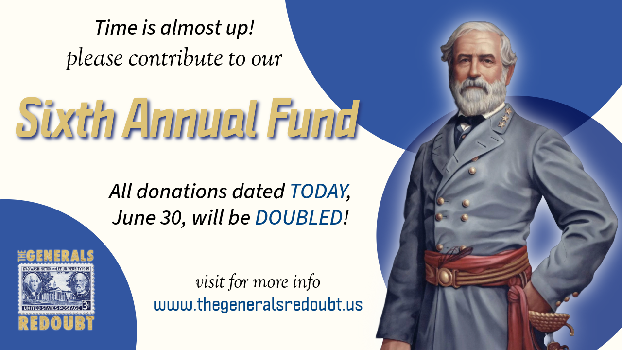 As our Annual Fund comes to a close, we encourage you to please contribute to The Generals Redoubt today. We NEED YOUR SUPPORT to make Washington and Lee a place like no other.
